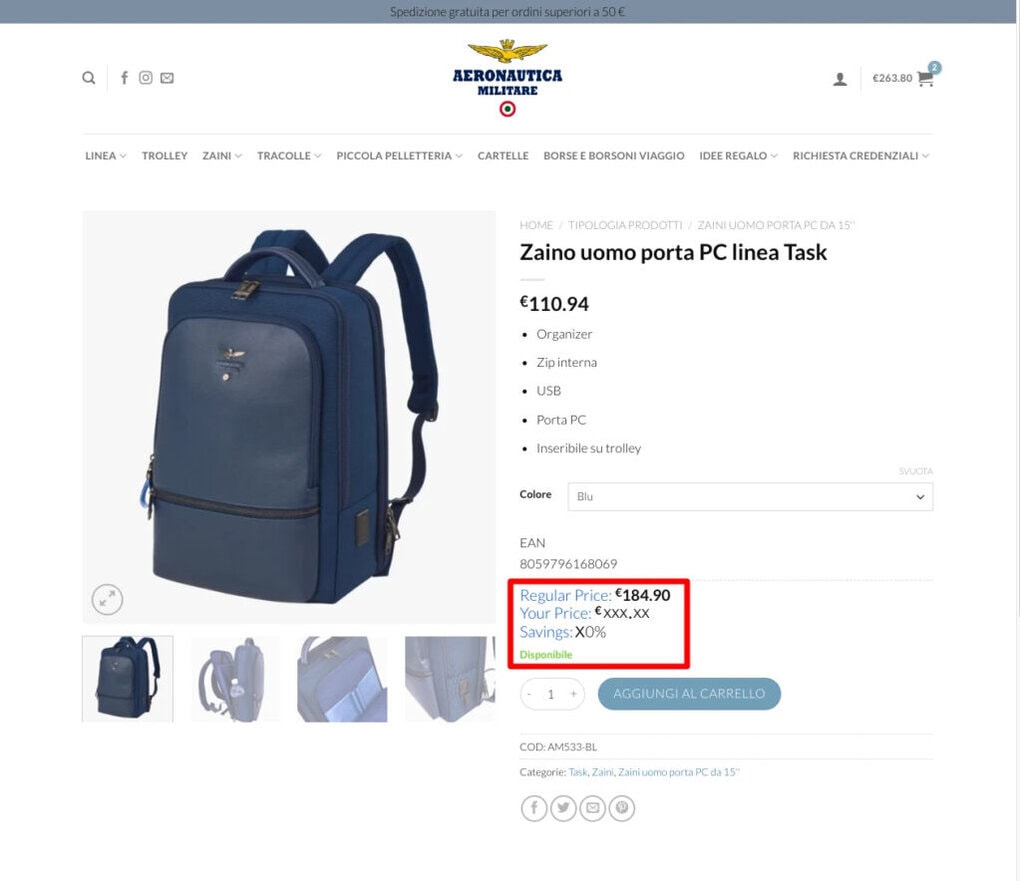 Effettuato l’accesso, selezionando il prodotto desiderato, vedrai lo sconto applicato