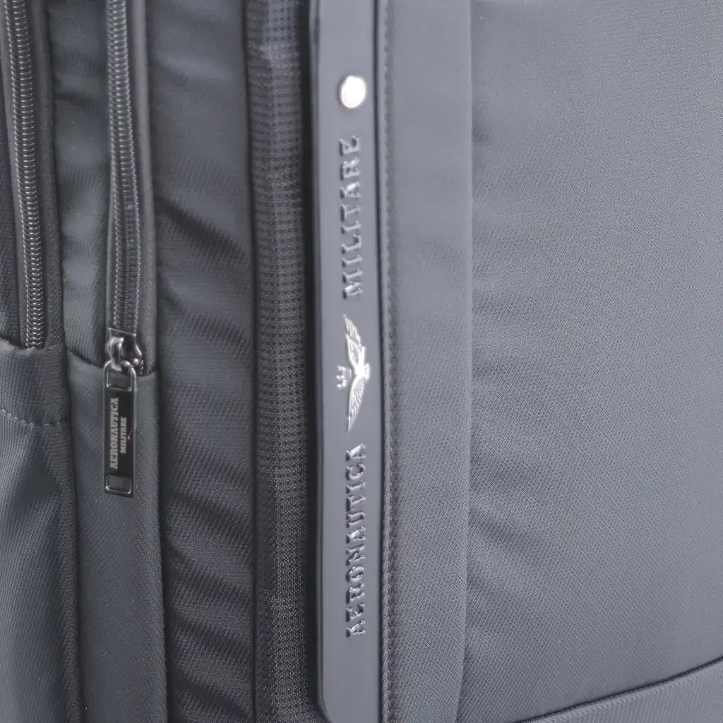 Lo stile minimale è spezzato da finiture diverse nella parte frontale e dal logo Aeronautica Militare in verticale con l’aquila color canna di fucile.