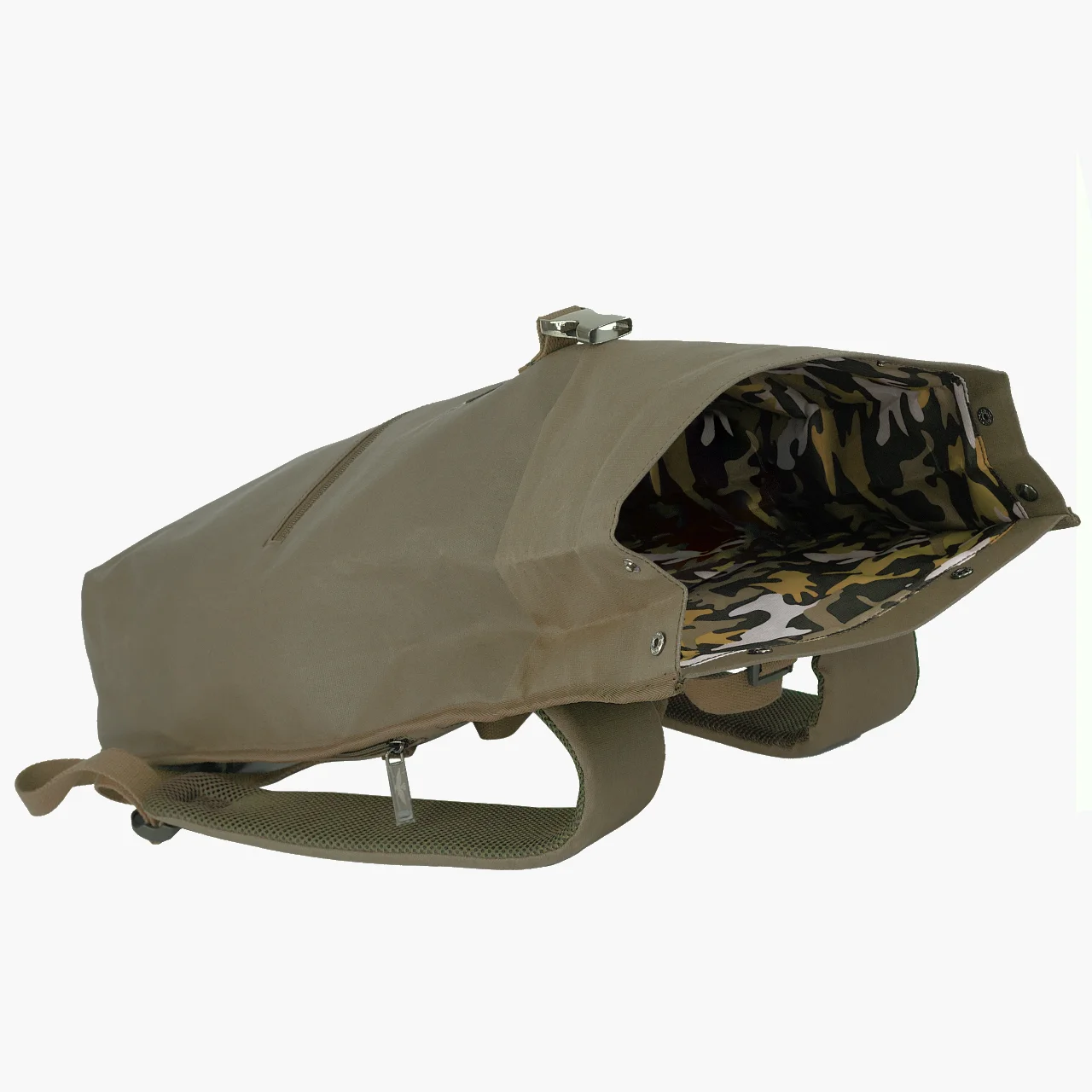 Zaino uomo roll top in canvas cerato ispirato al fascino vintage delle spedizioni outdoor. Il materiale ed i dettagli in metallo donano un carattere deciso e un look intramontabile.
